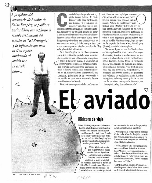 Saint-Exupéry otra vez en vuelo este año se cumplen cien años de su nacimiento [artículo] : Angélica Rivera.
