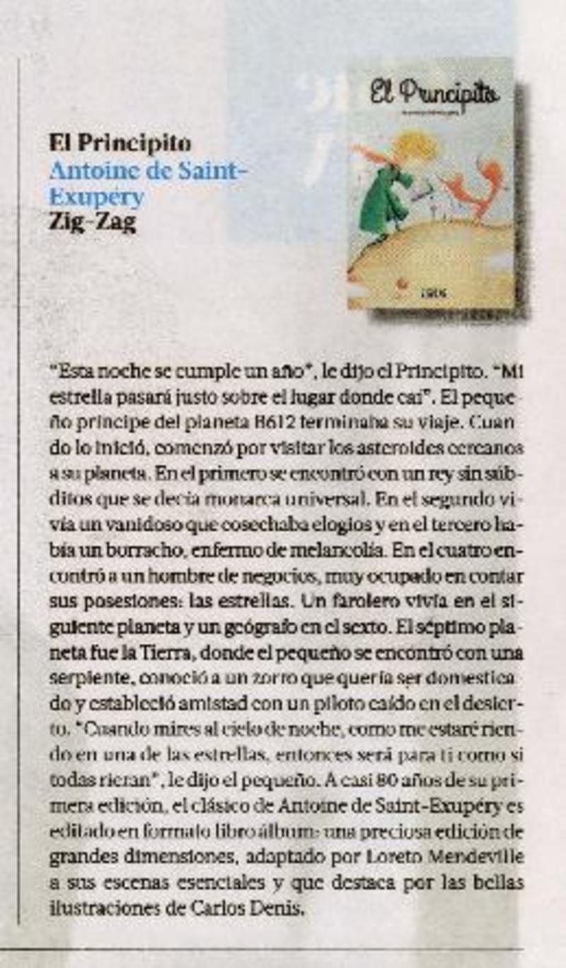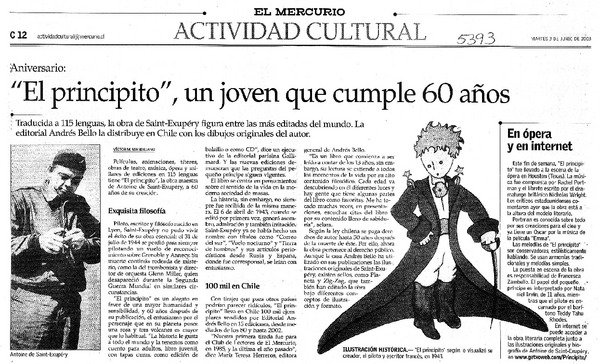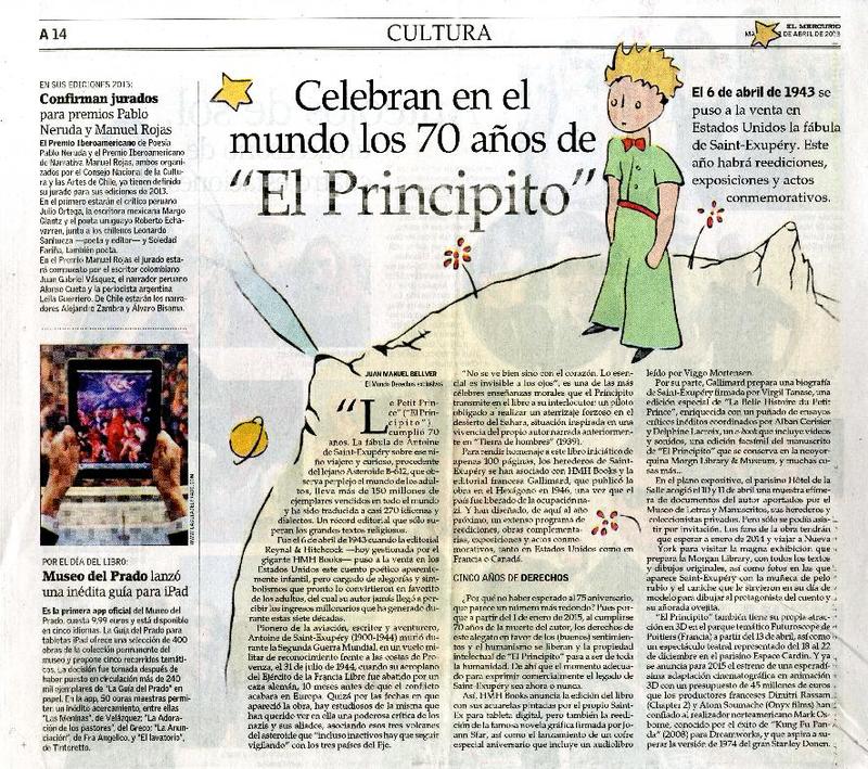 Celebran en el mundo los 70 años de "El Principito" [artículo] Juan Manuel Bellver.