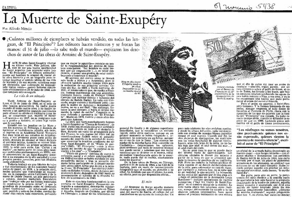 La Muerte de Saint-Exupéry [artículo] ALfredo Méndiz.