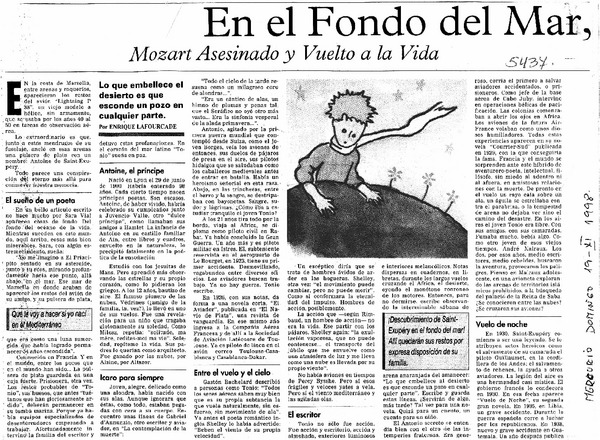 En e fondo del mar, Mozart asesinado y vuelto a la vida [artículo] Enrique Lafourcade.