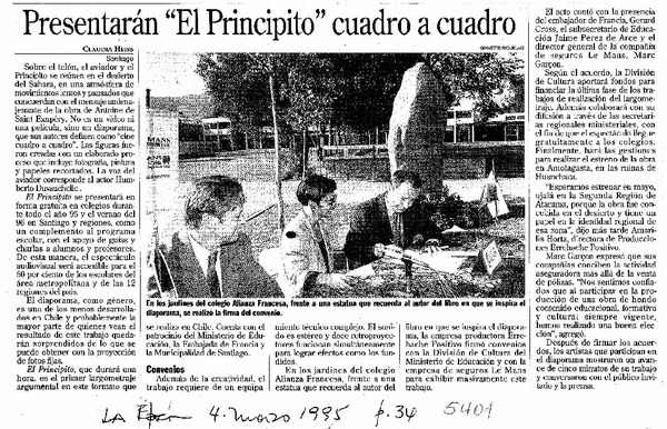 Presentarán "El Principito" cuadro a cuadro [artículo] Claudia Heiss.