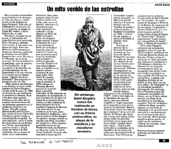 Saint-Exupéry, el nacimiento de un mito [artículo] Andrés Gómez.
