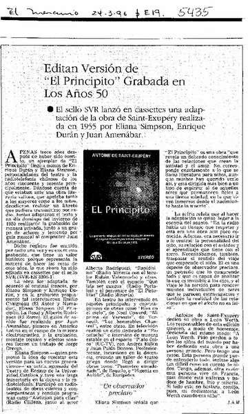 Editan versión de "El Principito" grabada en los años 50 [artículo] J.A.M.