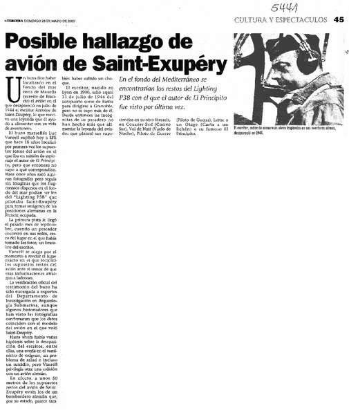 Posible hallazgo de avión de Saint-Exupéry [artículo]