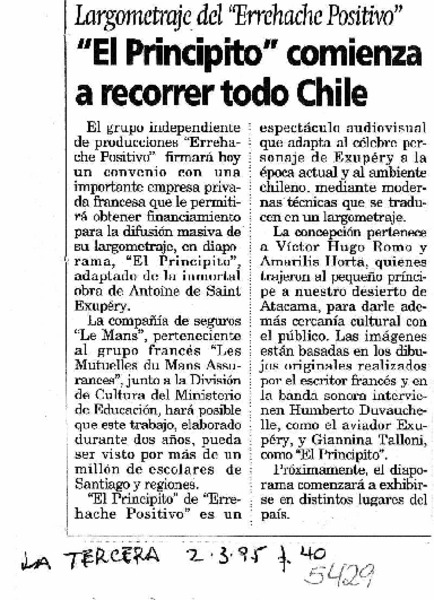 "El Principito" comienza a recorrer todo Chile [artículo]