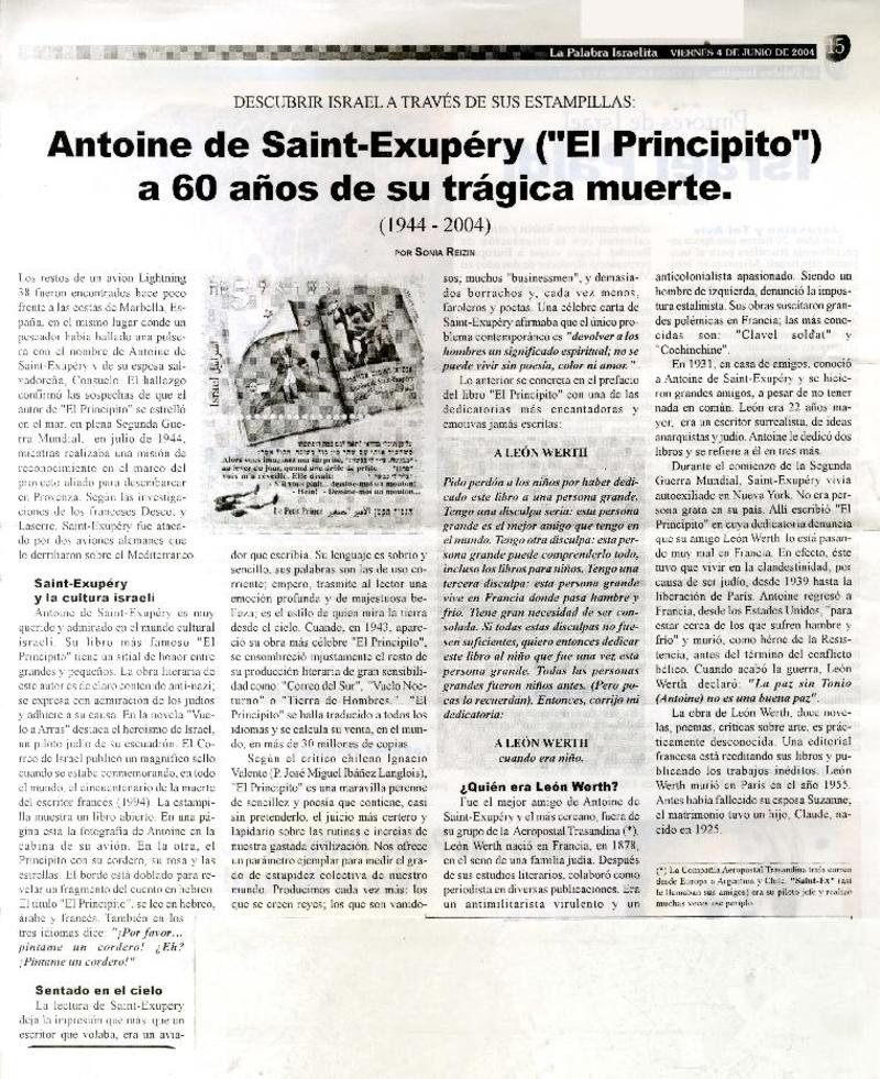 Antoine de Saint-Exupéry ("El Principito") a 60 años de su trágica muerte [artículo] Sonia Reizin.