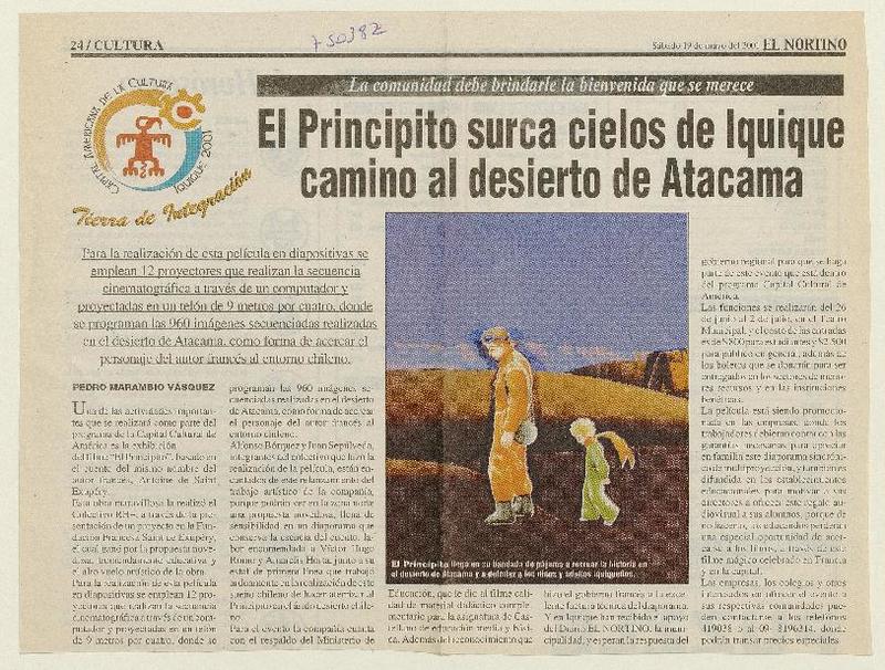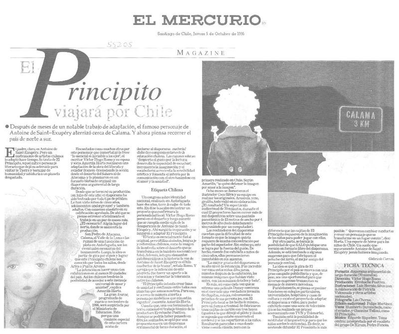 El principito surca cielos de Iquique camino al desierto de Atacama [artículo] Pedro Marambio Vásquez.
