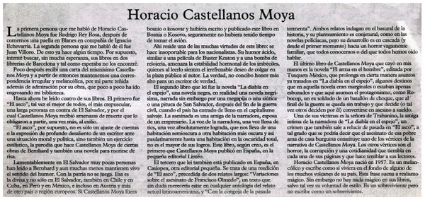 Horacio Castellanos Moya [artículo] Roberto Bolaño.