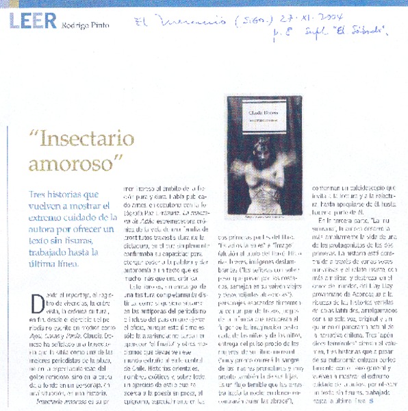 Insectario amoroso [artículo] Rodrigo Pinto