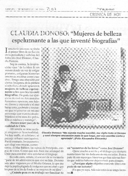 La extravagante escritura de Claudia Donoso [artículo] C. M.
