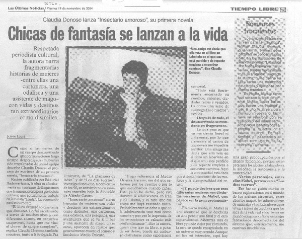 Autoras chilenas - Entrevistas - Insectario amoroso - Donoso, Claudia