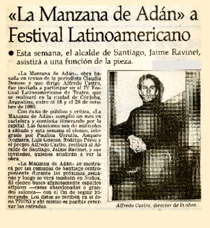 "La Manzana de Adán" a Festival Latinoamericano. [artículo]