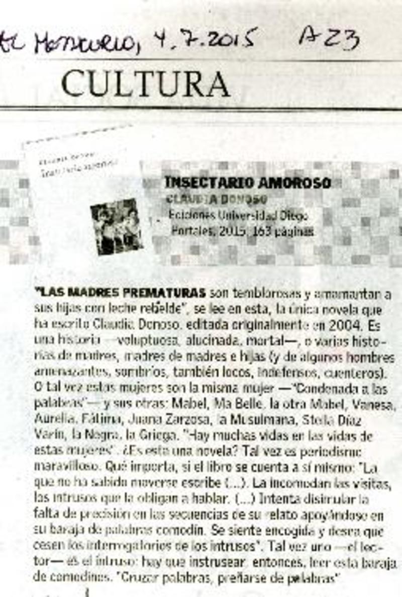 Insectario amoroso - Donoso, Claudia - Autores chilenos