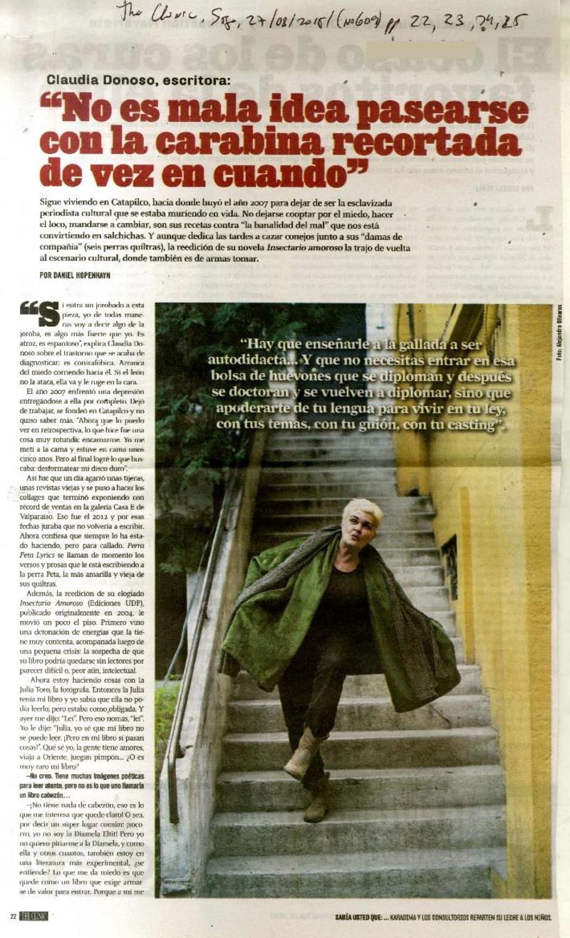 La metamorfosis de Claudia Donoso (entrevista) [artículo] Rita Cox.