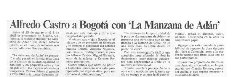 Alfredo Castro a Bogotá con "La manzana de Adán" [artículo]