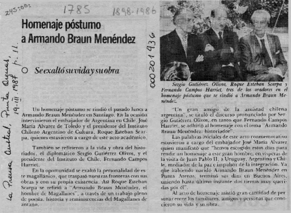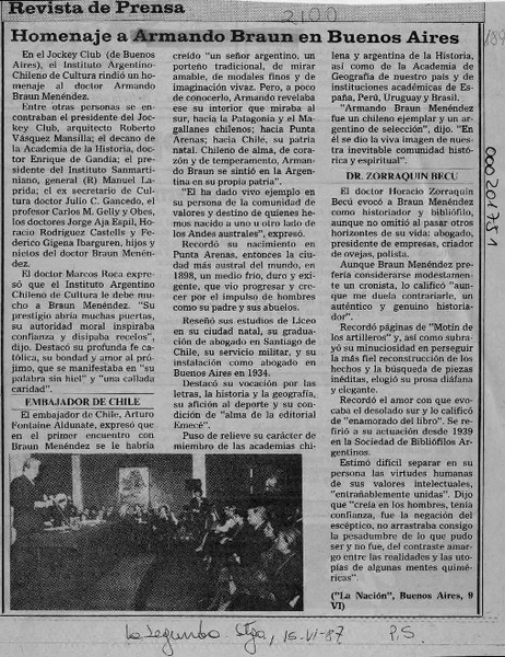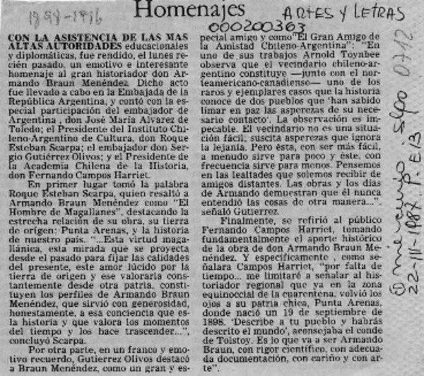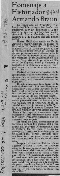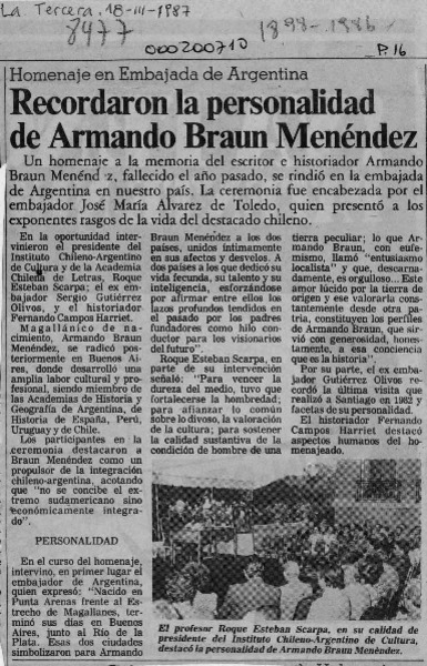 Recordaron la personalidad de Armando Braun Menéndez [artículo].