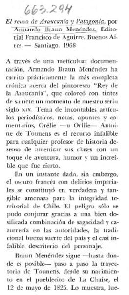 "El reino de araucanía y Patagonia" [artículo] Marino Muñoz Lagos.