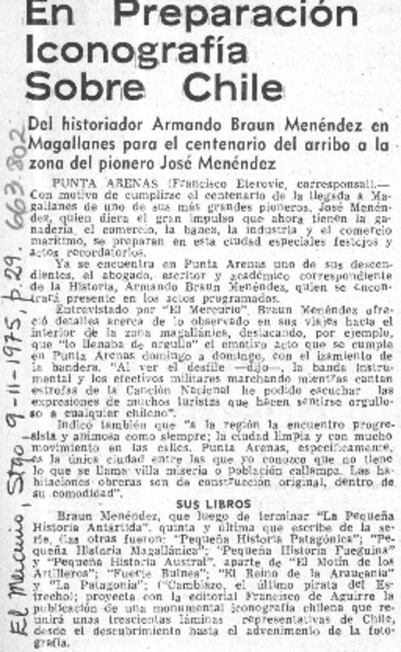 El escritor Armando Braun Menéndez viene pronto a Magallanes. [artículo]