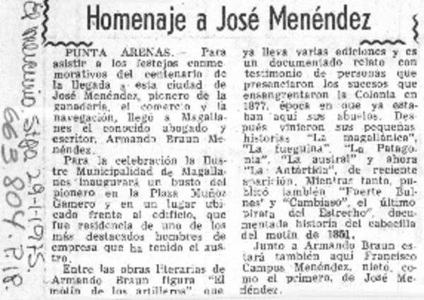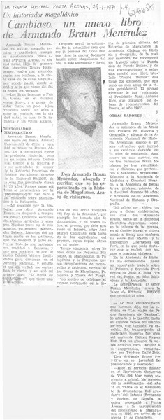 Armando Braun Menéndez llegó a Punta Arenas. [artículo]