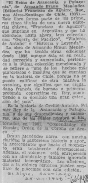 Autores chilenos - Braun Menéndez, Armando - Reino de Araucanía y Patagonía