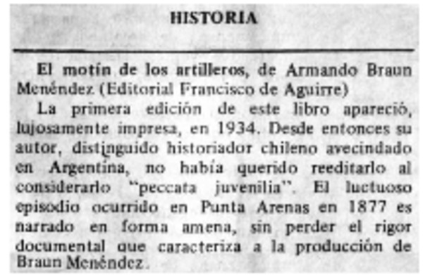 Armando Braun Menéndez, "El motín de los artilleros" [artículo] Hernán del Solar.