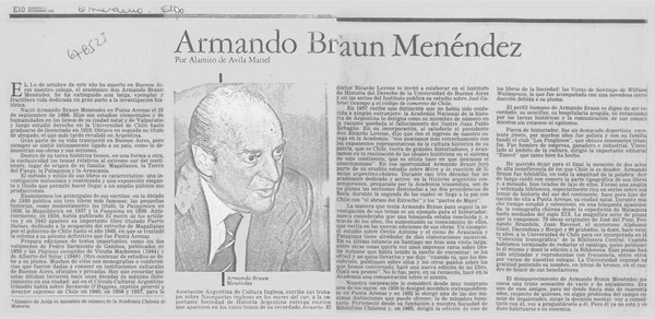 Armando Braun Menéndez [artículo] Alamiro de Avila Martel.