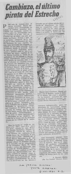 "Cambiazo, el último pirata del estrecho". [artículo]