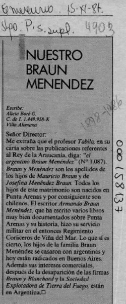 Nuestro Braun Menéndez [artículo] Alicia Boré G.