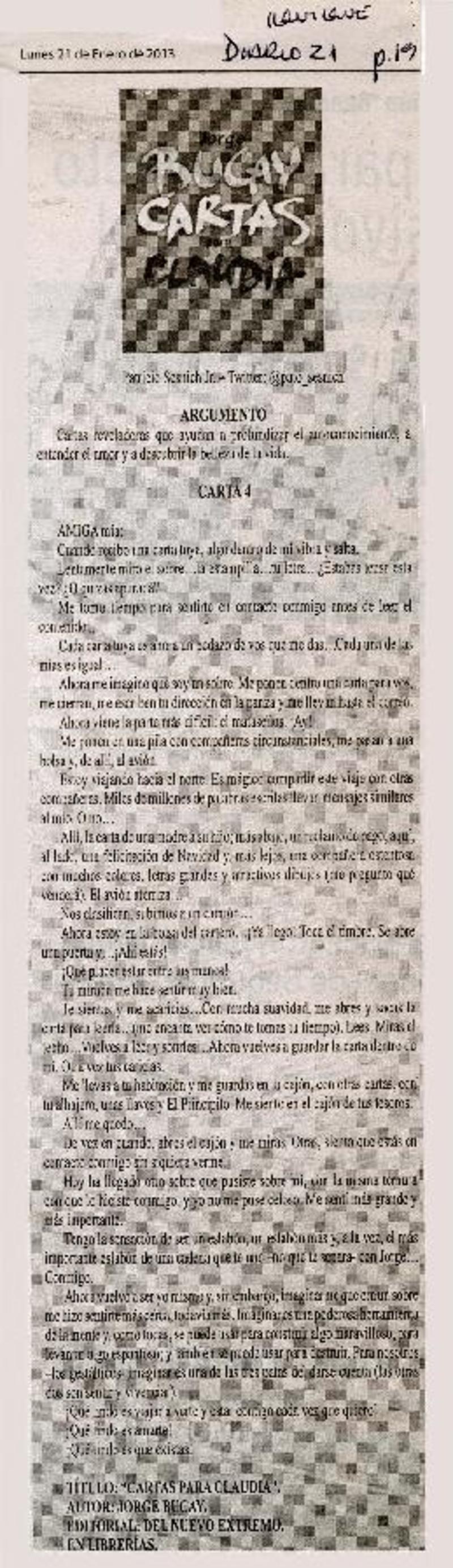 Cartas para Claudia [artículo] Patricio Sesnich Jr.