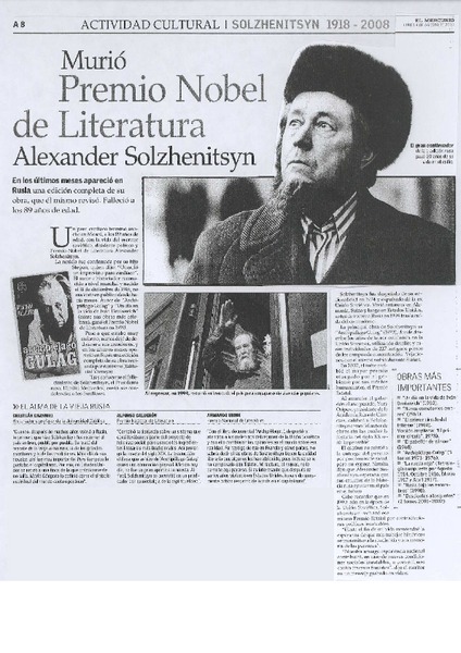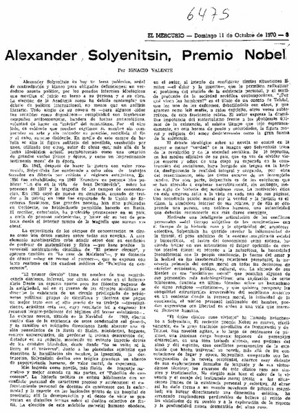 ALexander Solyenitsin, Premio Nobel [artículo] Ignacio Valente.