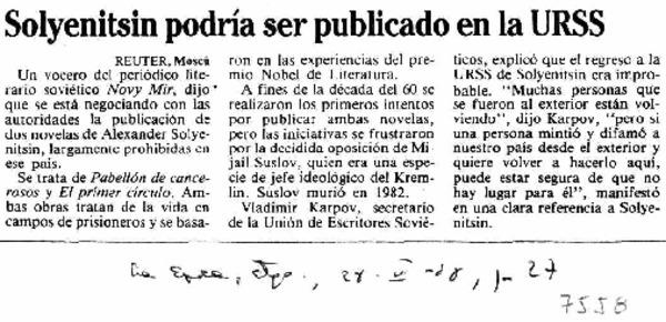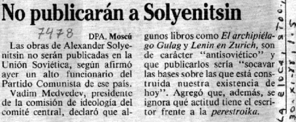 Solyenitsin podría ser publicado en la URSS. [artículo]