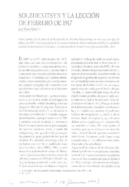 Solzhenitsyn y la lección de febrero de 1917 [artículo] Mara Quadri.