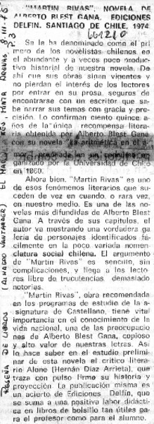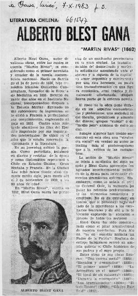 "Martin Rivas", novela de Alberto Blest Gana [artículo] M.M.L.