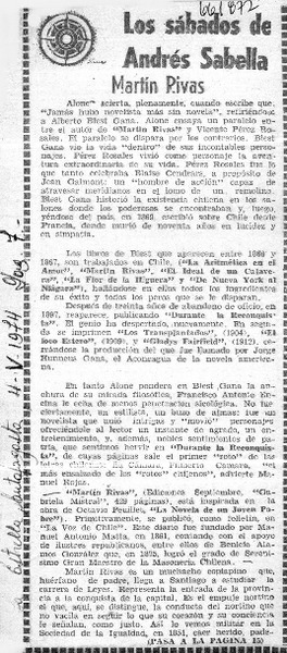 Martín Rivas [artículo] Antonio Cárdenas Tabies.