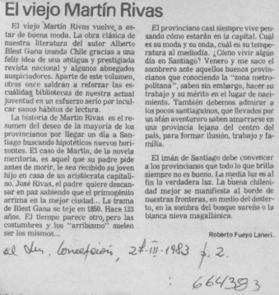 El viejo Martín Rivas [artículo] Roberto Fueyo Laneri.