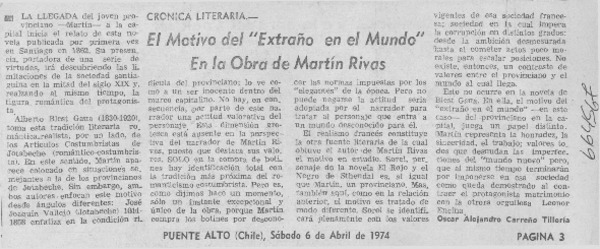 El motivo del "Extraño en el mundo" en la obra de Martín Rivas [artículo] Oscar Alejandro Carreño Tillería.