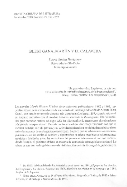 Blest Gana, Martín y el calavera [artículo] Laura Janina Hosiasson.