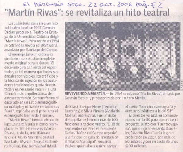 Comedia "Martín Rivas" debutará el 14 en Viña. [artículo]