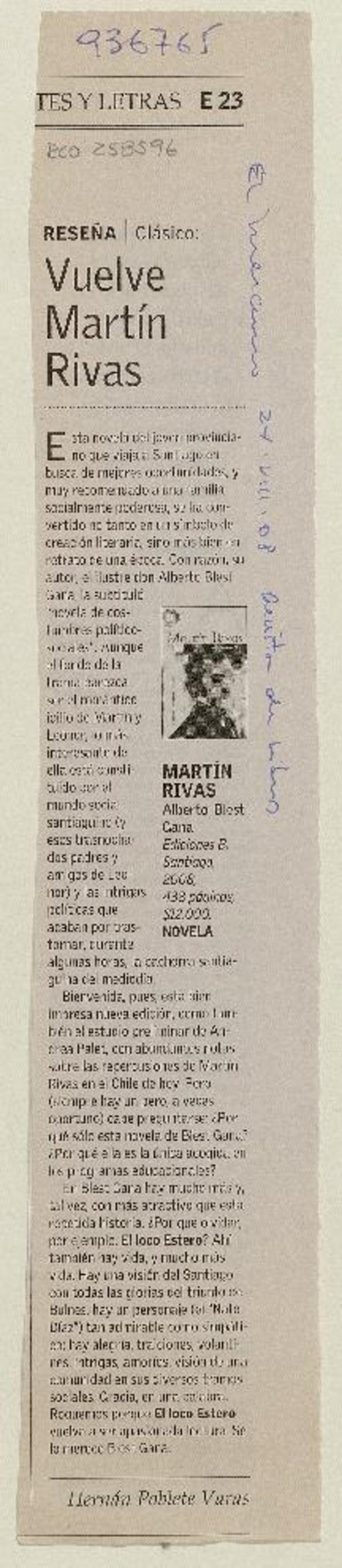 Vuelve Martín Rivas [artículo] Hernán Poblete Varas.