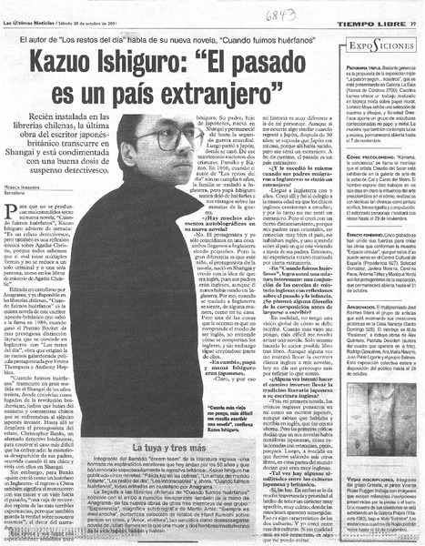 Kazuo Ishiguro: "el pasado es un país extranjero" [entrevista] [artículo] : Mónica Iribarren.