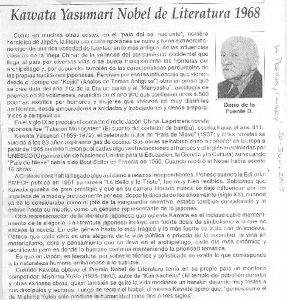 Kawata Yasumari Nobel de Literatura 1968 [artículo] Darío de la Fuente