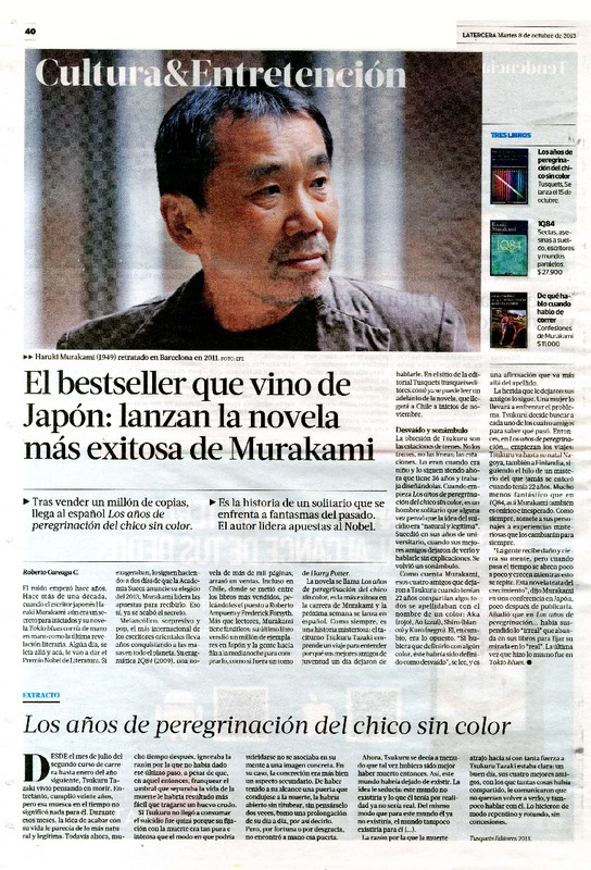 El bestseller que vino de Japón: lanzan la novela más exitosa de Murakami [artículo] Roberto Careaga C.