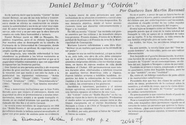 Daniel Belmar y "Coirón" [artículo] Gustavo San Martín Ravanal.
