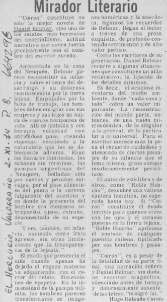 Mirador literario [artículo] Hugo Rolando Cortés.