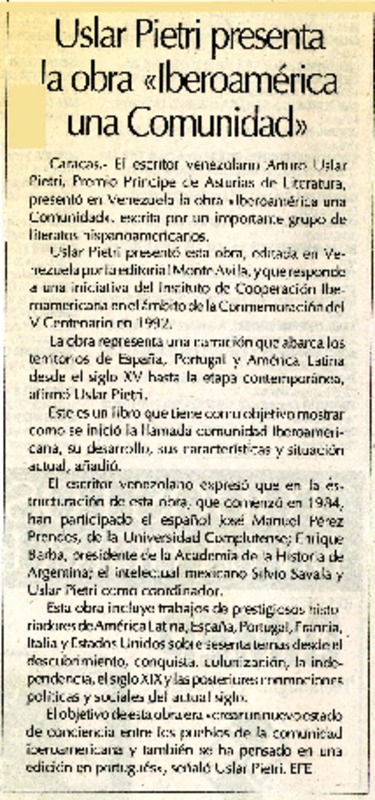 Premio Príncipe de Asturias lo ganó escritor Uslar Pietri [artículo].