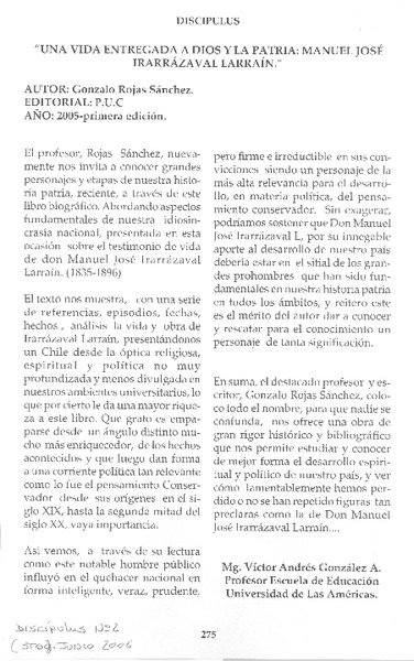 Autores chilenos - Rojas Sánchez, Gonzalo - Manuel José Irarrázaval Larraín