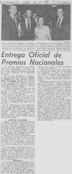 Entrega oficial de premios nacionales. [artículo]