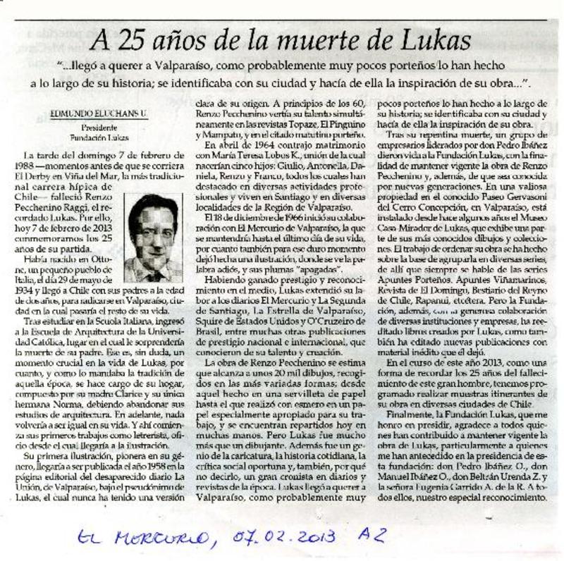 A 25 años de la muerte de Lukas [artículo] Edmundo Eluchans U.