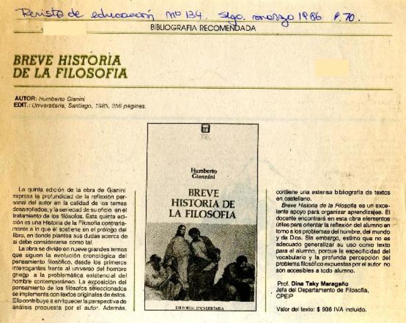Autores chilenos - Giannini, Humberto - Breve historia de la filosofía