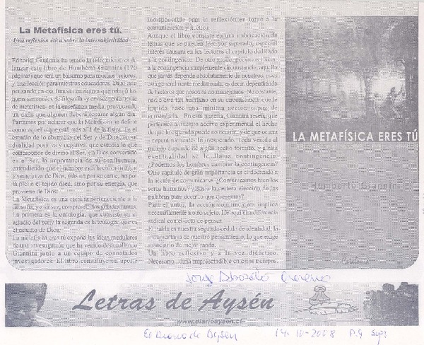 La metafísica eres tú [artículo] Jorge Aravena Abasolo.